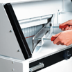 Conveniencia y precisión es lo que obtienes con nuestra guillotina profesional con EASY-CUT, programable con pánel táctil y cortina de seguridad de luz IR en la mesa frontal.